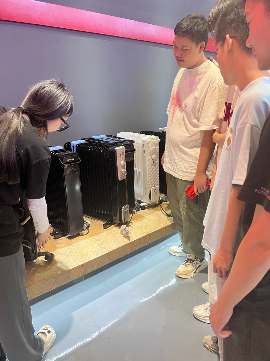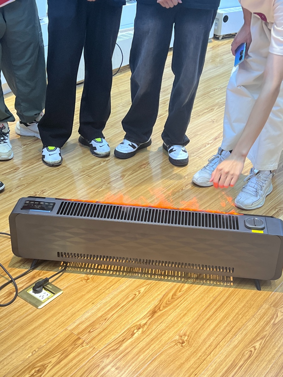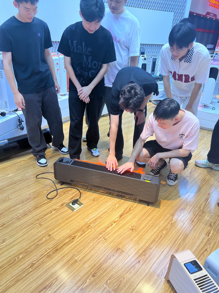 期間,同學(xué)們對(duì)炭火火焰踢腳線產(chǎn)生了濃厚興趣,這也是先鋒去年冬季的主推新品,即開(kāi)即熱。
