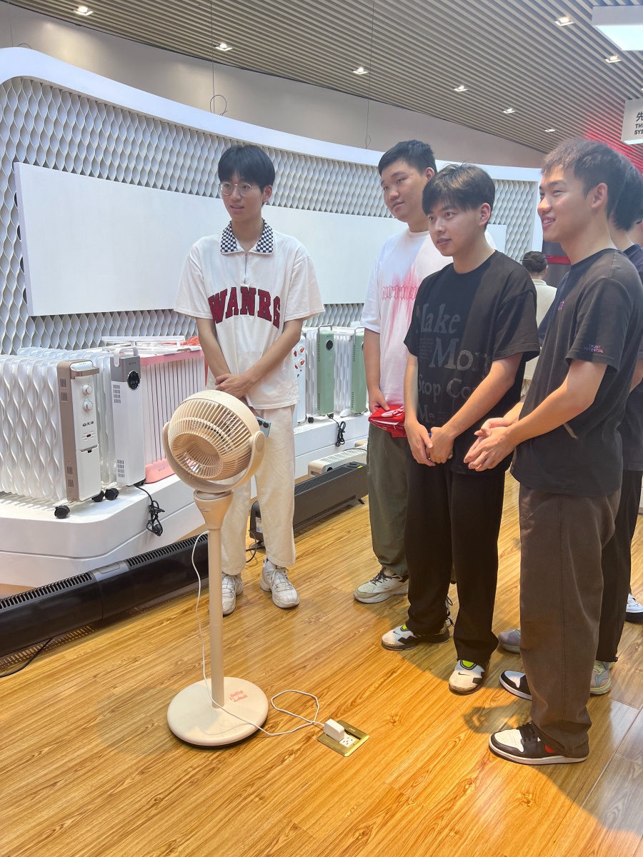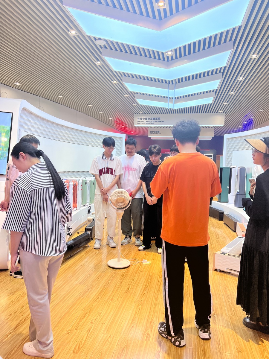 這是今年新品離線智能語(yǔ)音循環(huán)扇,在聽(tīng)完循環(huán)扇和普通風(fēng)扇的區(qū)別后,同學(xué)們也親自體驗(yàn),與“小先小先”進(jìn)行了親密交互。